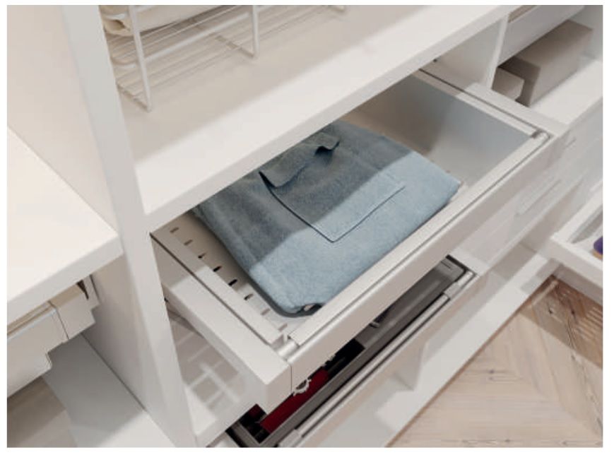 Практичные корзины Выдвижные ящики с тремя видами корзин по выбору: металлическая, плетеная и ажурная. Все ящики оснащены механизмом бесшумного закрытия и функцией полного выдвижения, которые гарантируют удобство в ежедневном использовании.