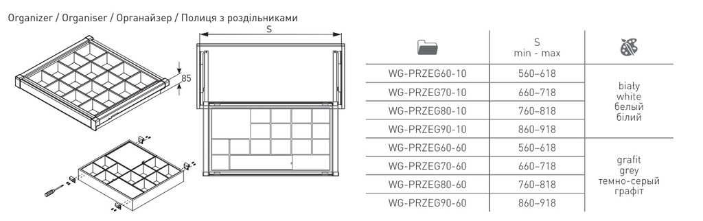 Корзина с органайзером белая, с доводчиком полного выдвижения WG-PRZEG...-10 GTV *