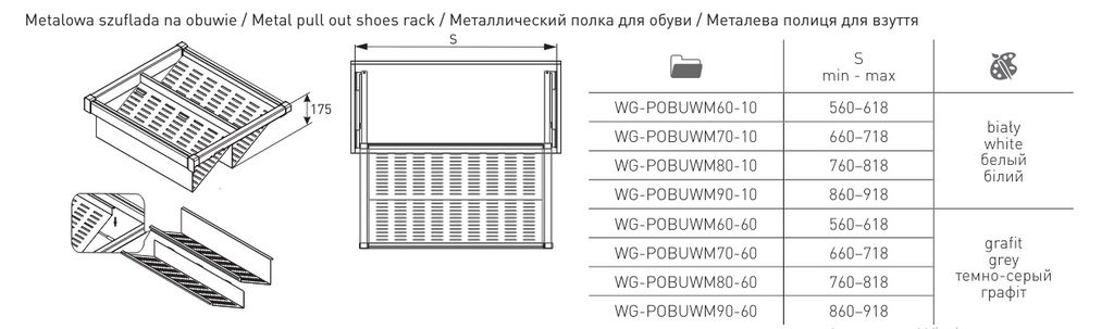 Полка для обуви перфорированная белая, с доводчиком, полного выдвижения WG-POBUWM...-10 GTV *