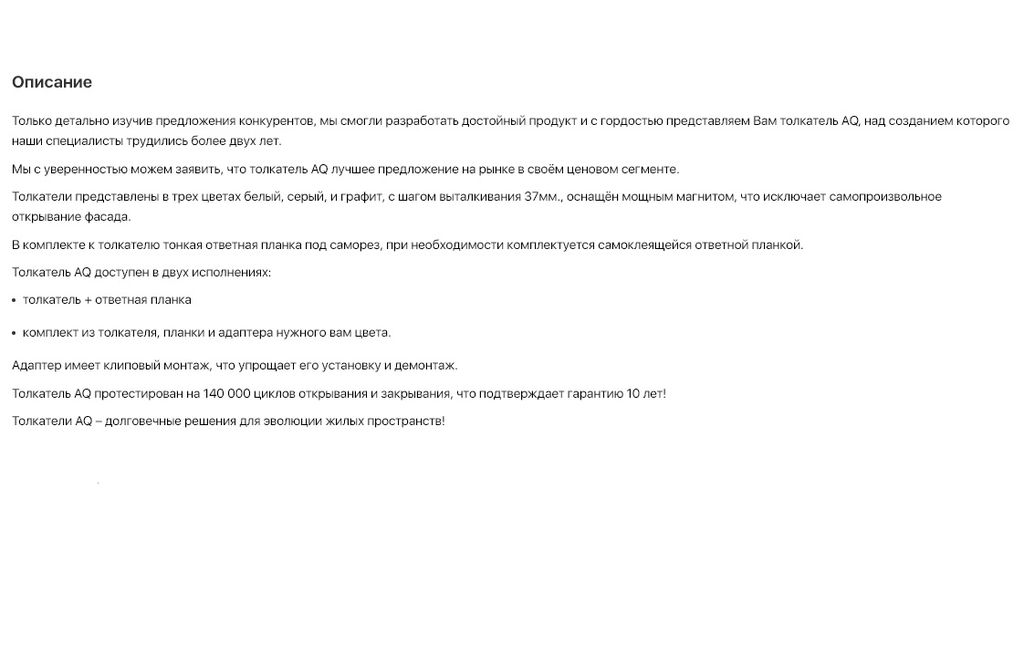 акция Добавить в избранное Убрать из избранного Артикул: 6873 Артикул: 6873 Толкатель регулируемый врезной с МАГНИТНЫМ окончанием БЕЛЫЙ (09.0019) AQ 115 ₽ В корзину Купить в 1 клик В корзину Купить в 1 клик Описание Документы Описание Документы Инструкция по монтажу толкателей AQ.pdf 2.6 Мб, 09 апреля в 19:44 ВОЗМОЖНО ВАС ЗАИНТЕРЕСУЕТДобавить в избранноеУбрать из избранногоГазлифт нижнего открывания (БАРНЫЙ) PD-ECGDL-0.. GTV 225 ₽ПараметрыДобавить в избранноеУбрать из избранногоГазовый подъёмник стандартный PD-G0....-N02 GTV 170 ₽ПараметрыДобавить в избранноеУбрать из избранногохитГазовый подъёмник с амотризатором и регулировкой СЕРЫЙ PD-GAM....-N02 GTV 290 ₽ПараметрыДобавить в избранноеУбрать из избранногоГазовый подъёмник L=160мм укороченный PD-G...160-02 GTV 185 ₽Параметры