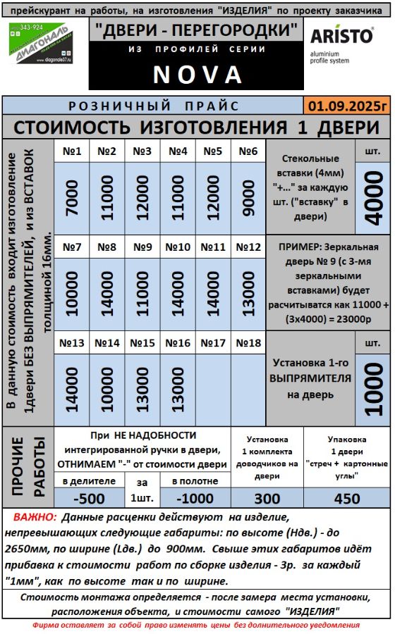 Система NOVA Aristo - двери и перегородки на заказ.